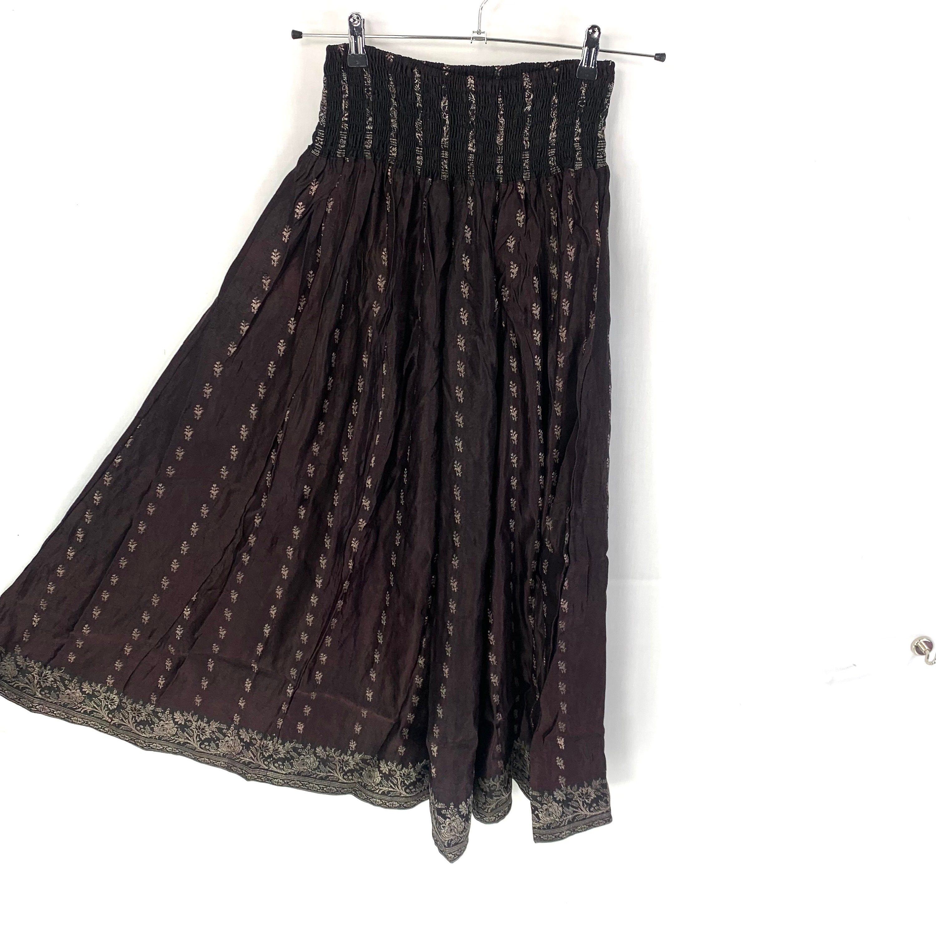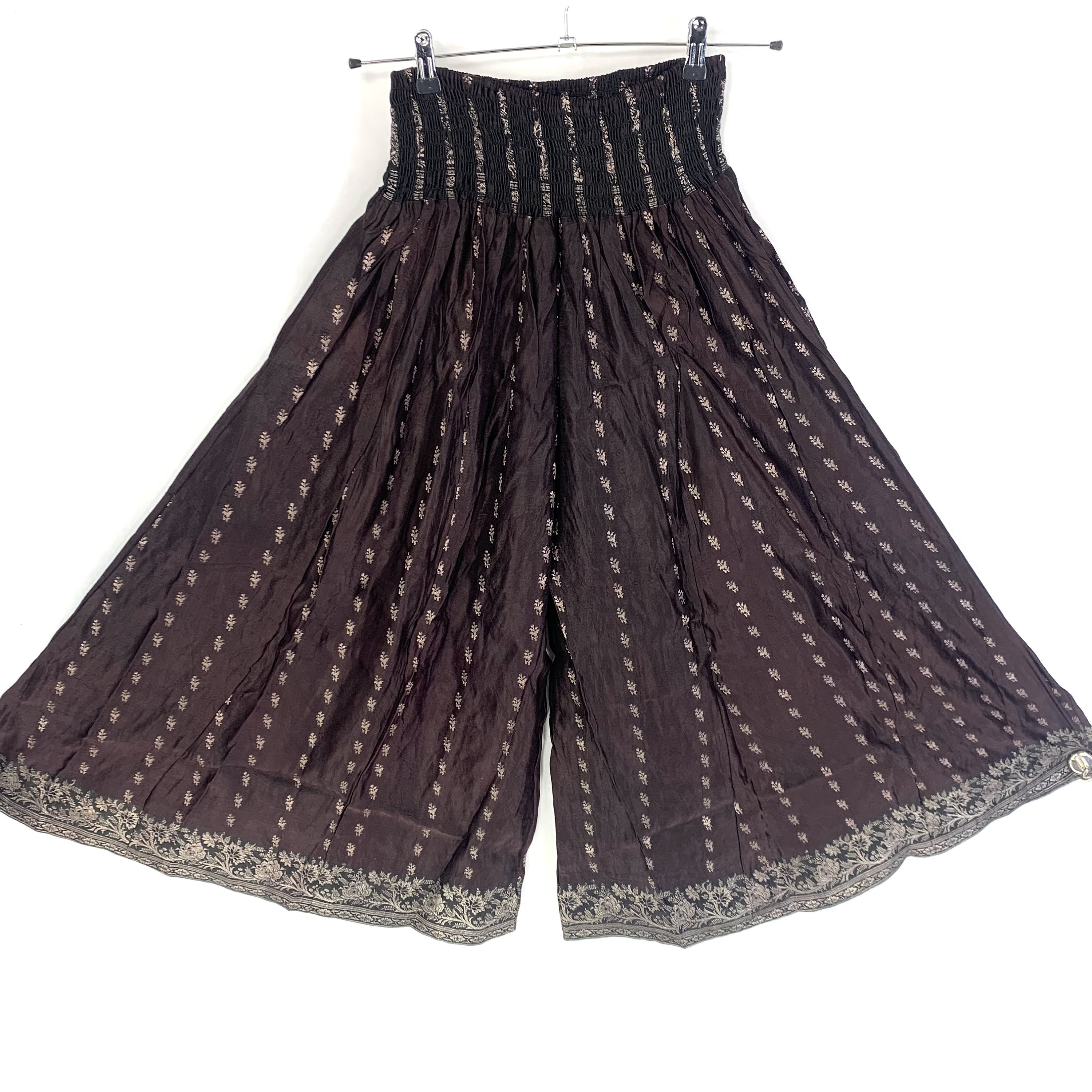 These One size Plus version of our Culottes are suitable for a fuller figure. Karma Suitsya Silk Brocade Culottes are long women’s pants cut with a loose, extremely wide leg that flares out from the elasticated waist down to the ankles. We use elastic thread in shirring style stitching to create an expandable waistband which gives fabulous flexibility in the fitting.