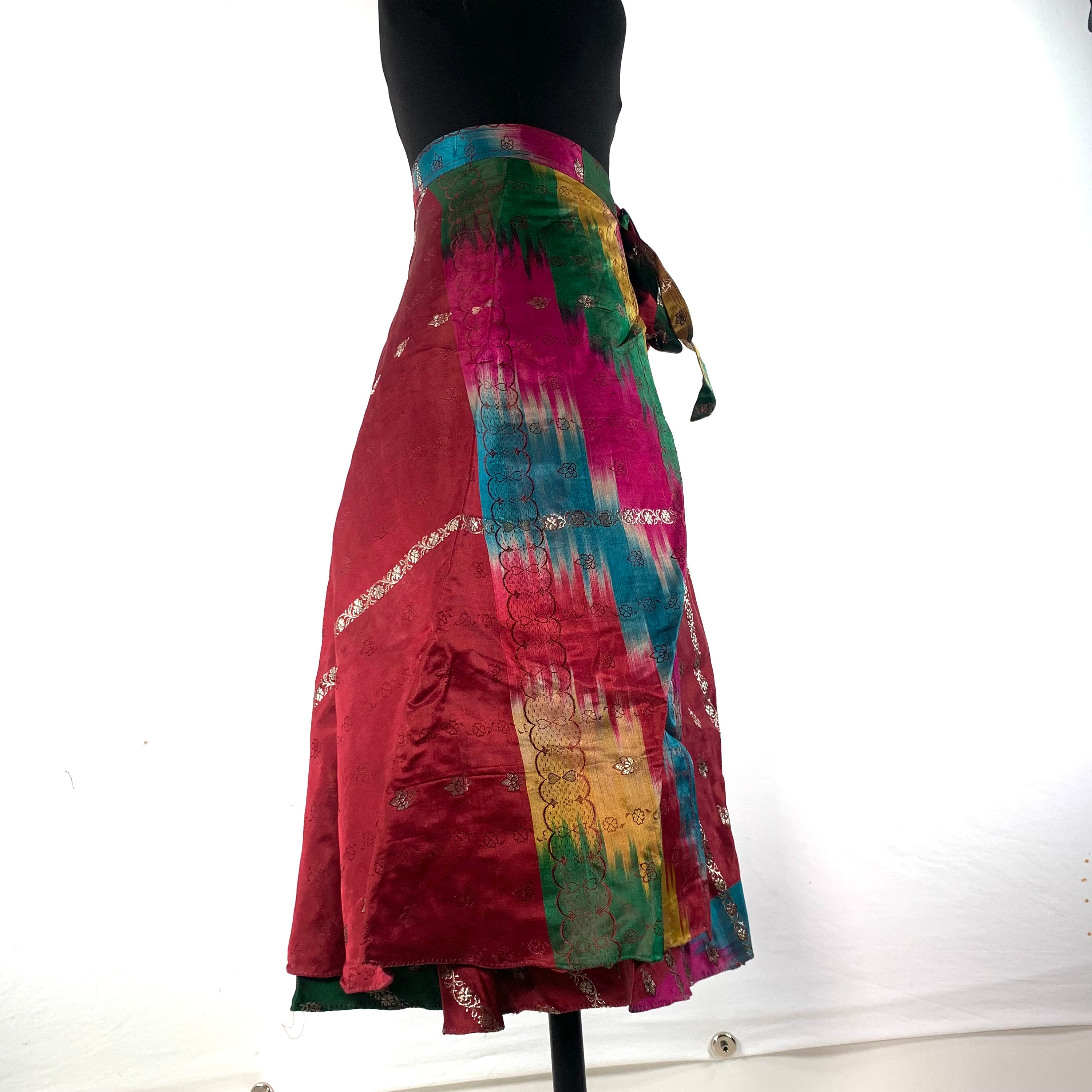A-Line wrap skirt, handmade from fine quality vintage silk brocade saris, ensuring every skirt is unique just like you! In India, these sari are very popular wear at weddings and parties. This Wrap Around Skirt adds colour & personality to any outfit, with two long and strong straps either end of the rectangular skirt that wrap around your body, fitting you perfectly. We make this style of wrap skirt in midi, & long length. Skirt for Life! ❤️ Dress to impress 🌸