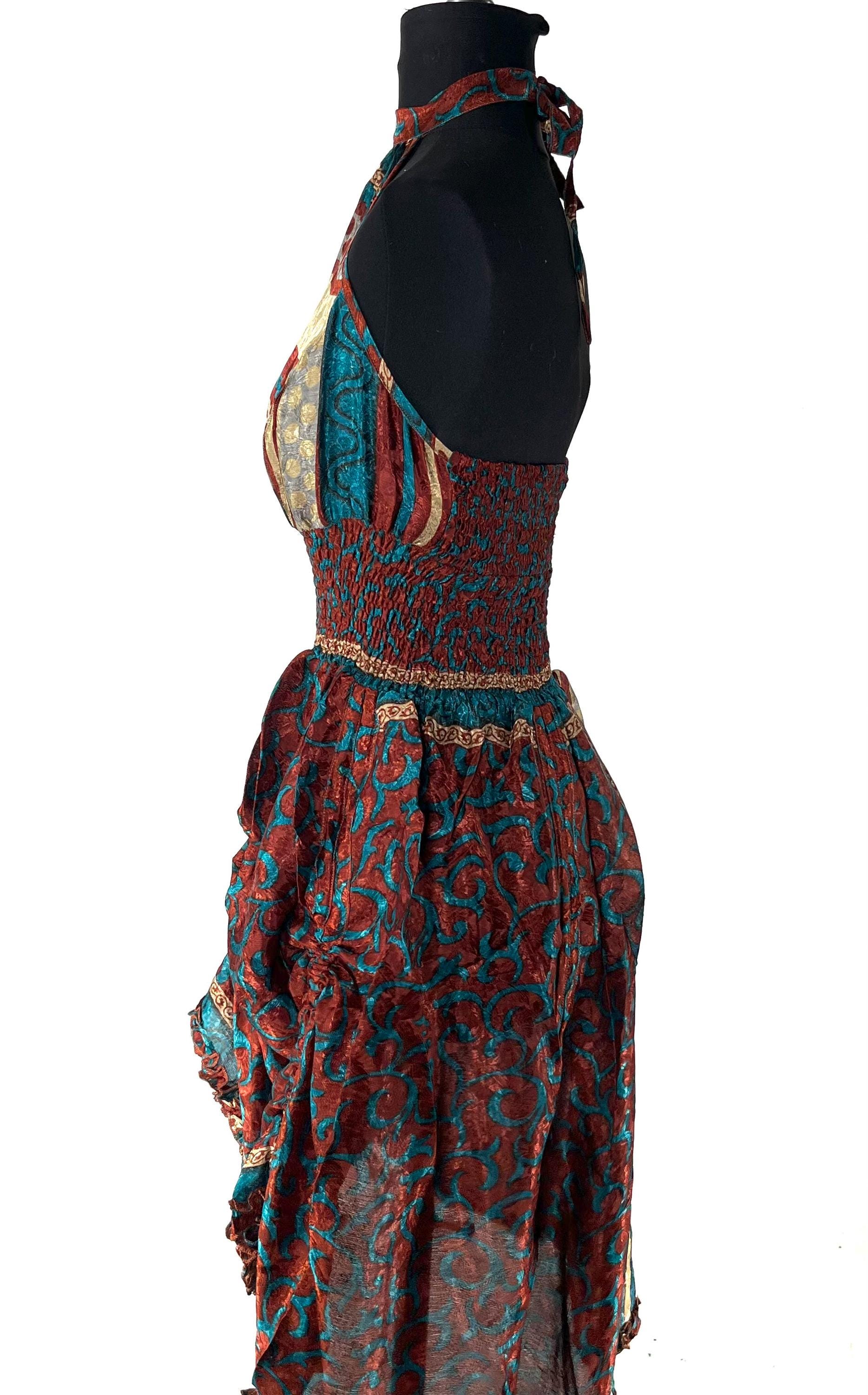 Sadie Silk Pixie Fantasy Dress a One Size Goddess Dress, Hippie Boho Summer Halter Dress with a ruched skirt. SKU:1031-8385