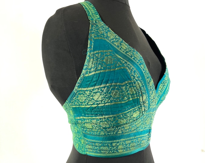 L/XL. Phoenix Tribal Top. New cut in up-cycled Silk Brocade, SKU:1025-5986
