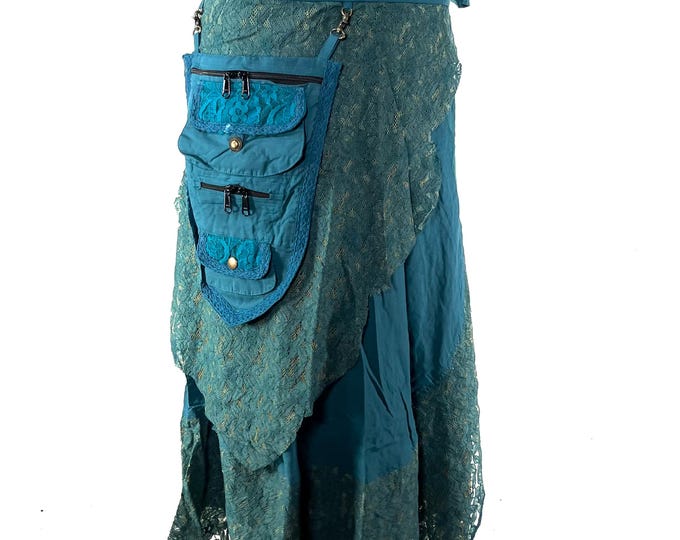 Victorian Ruffle Skirt - Aqua-Marine Pick-Up Bustle cotton peasant gypsy skirt